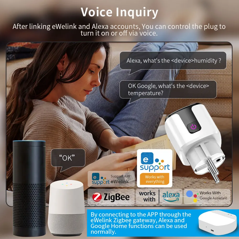 Home Assistant integration makes the ELIVCO Smart Plug Zigbee Smart Socket a strong choice for advanced smart home users. Through Zigbee 3.0, the plug connects smoothly to Home Assistant setups via the eWelink gateway. Consequently, users build complex automation workflows and monitor energy data centrally. This ELIVCO Zigbee Plug fits professional and enthusiast environments alike. Moreover, compatibility with open systems increases long-term flexibility. Customers across Europe often search for Zigbee smart sockets that work reliably with Home Assistant, and this model meets that demand. Therefore, ordering online becomes a confident decision for those planning scalable smart home projects.Voice Assistant Compatibility